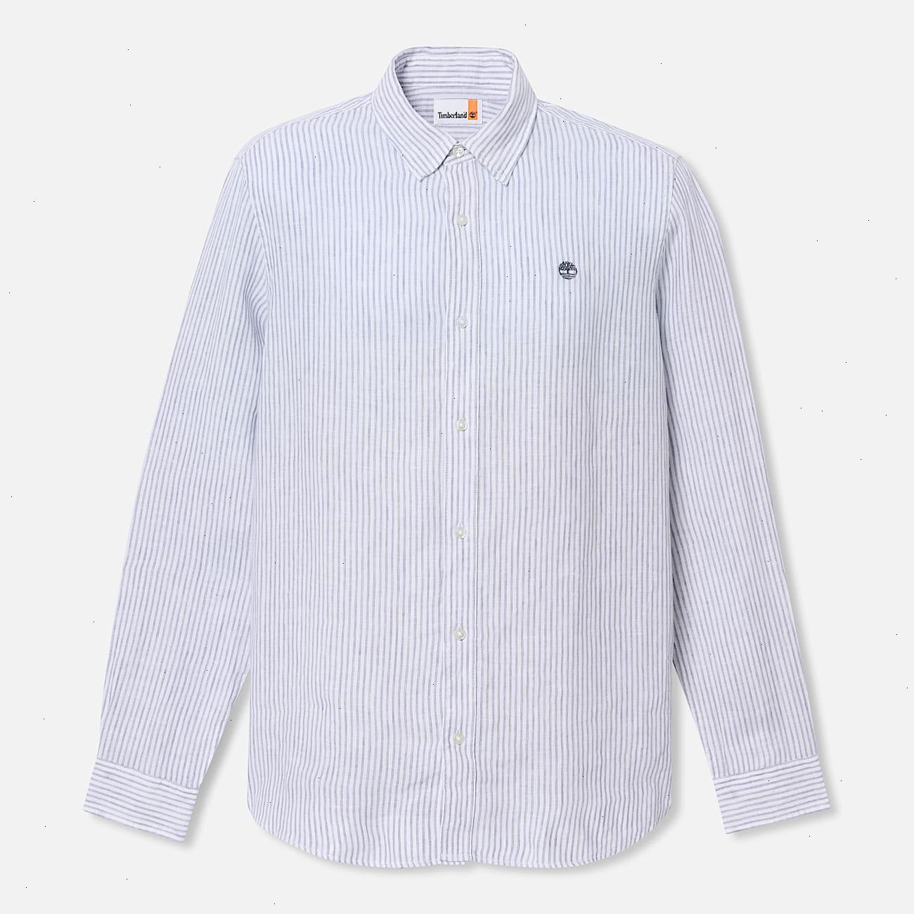 A refined classic. The linen-cotton blend helps deliver an easy drape and cool style in a regular fit, with stripes that fit in from the workday to the weekend. Complete with a button opening and an embroidered Timberland tree logo, it's a polished staple and a timeless silhouette.