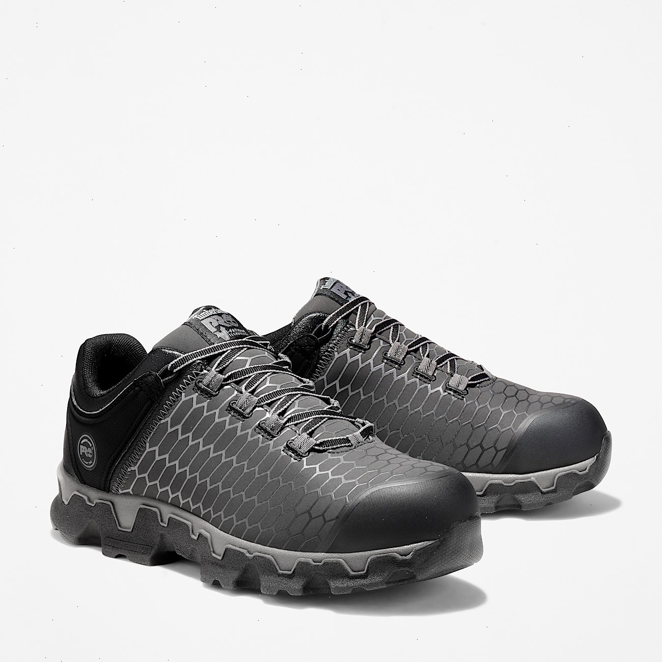 Our Timberland PRO® Powertrain Sport athletic work shoes offer lightweight performance, but they're all business when it comes to protection. Not only are they tough enough to handle working on your feet all day, they feature alloy safety toes, Anti-Fatigue Technology for all-day shock absorption and energy return, and they are designed for Electro Static Dissipating (ESD) compliance to minimize hazards from static electricity buildup. Their breathable, moisture-wicking linings are made of ReBOTL™ fabric containing at least 50% recycled plastic. Plus, their outsoles are made of heat-, oil-, slip-, and abrasion-resistant, non-marking polyurethane for enhanced traction and comfort.