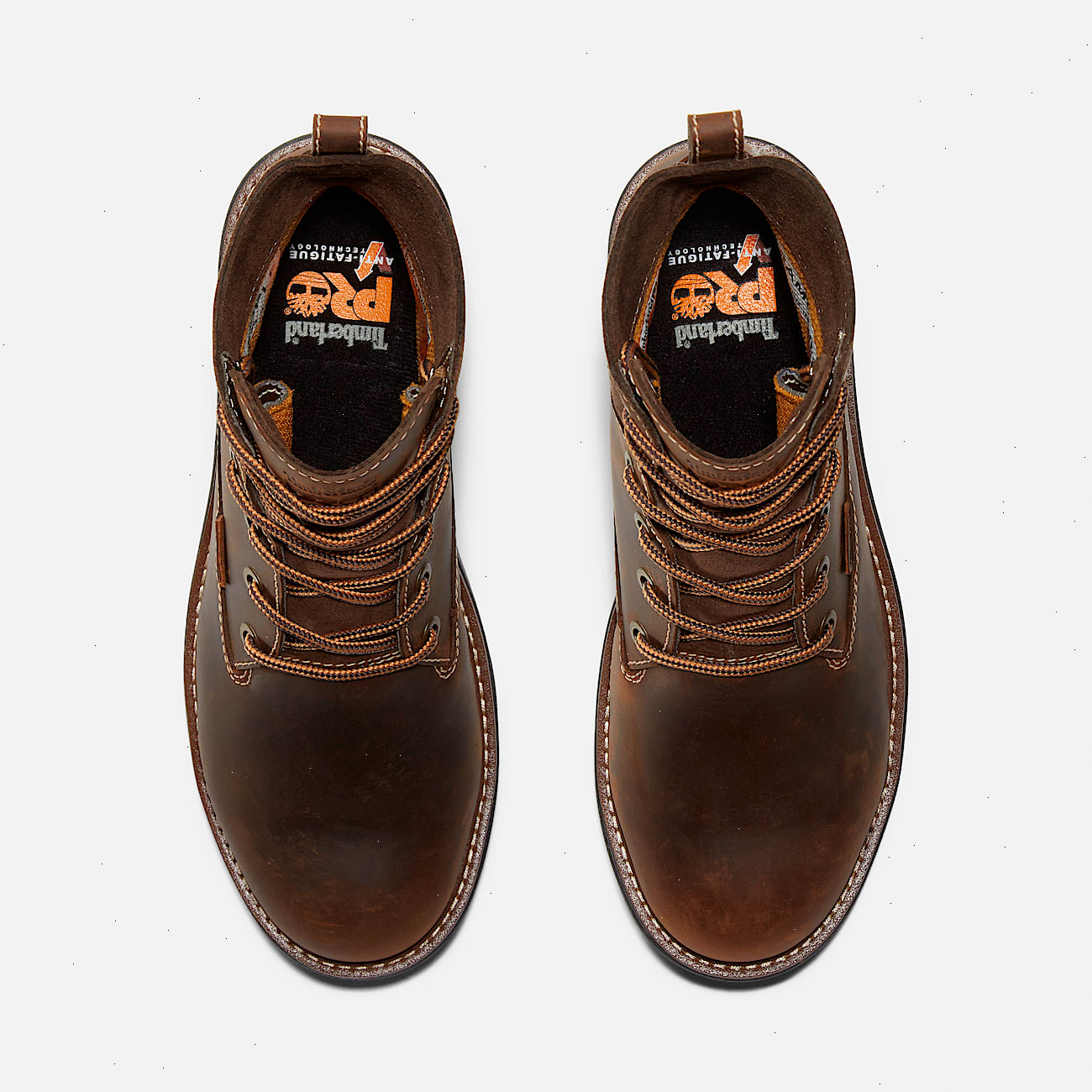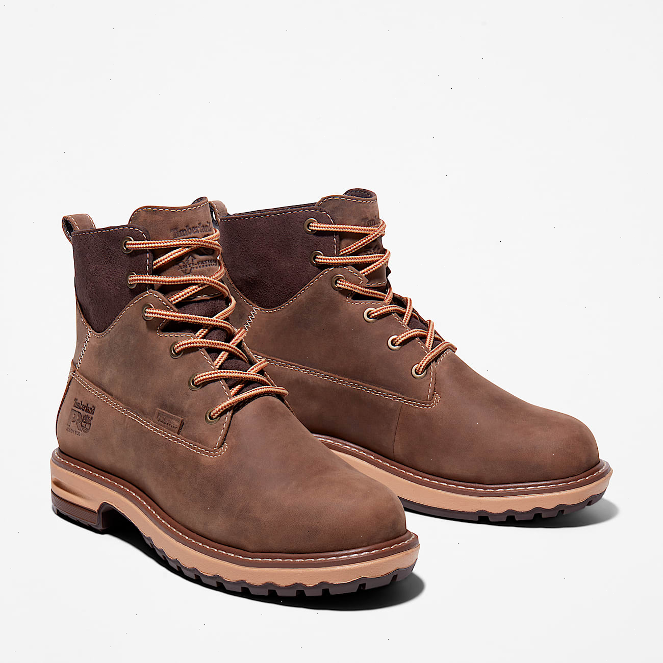 Our Hightower waterproof, alloy safety-toe boots are built without compromise on a women's specific, single-width, anatomical last for a more versatile, optimal fit and all-day performance on the job. Their Premium Timberland® waterproof leather uppers are supplemented with internal waterproof membranes that give them extreme waterproof protection and resistance to blood-borne pathogens. Your feet will appreciate our Anti-Fatigue Technology footbeds that not only absorb shock, but return your energy with every step. We make our breathable, moisture-wicking linings of ReBOTL™ fabric containing at least 50% recycled plastic, plus we add an antimicrobial treatment to help keep them smelling fresh. Underneath, you'll discover our lightweight, non-marking, All-Weather TPU outsoles are heat-, oil-, slip-, and abrasion-resistant for enhanced traction in most conditions.