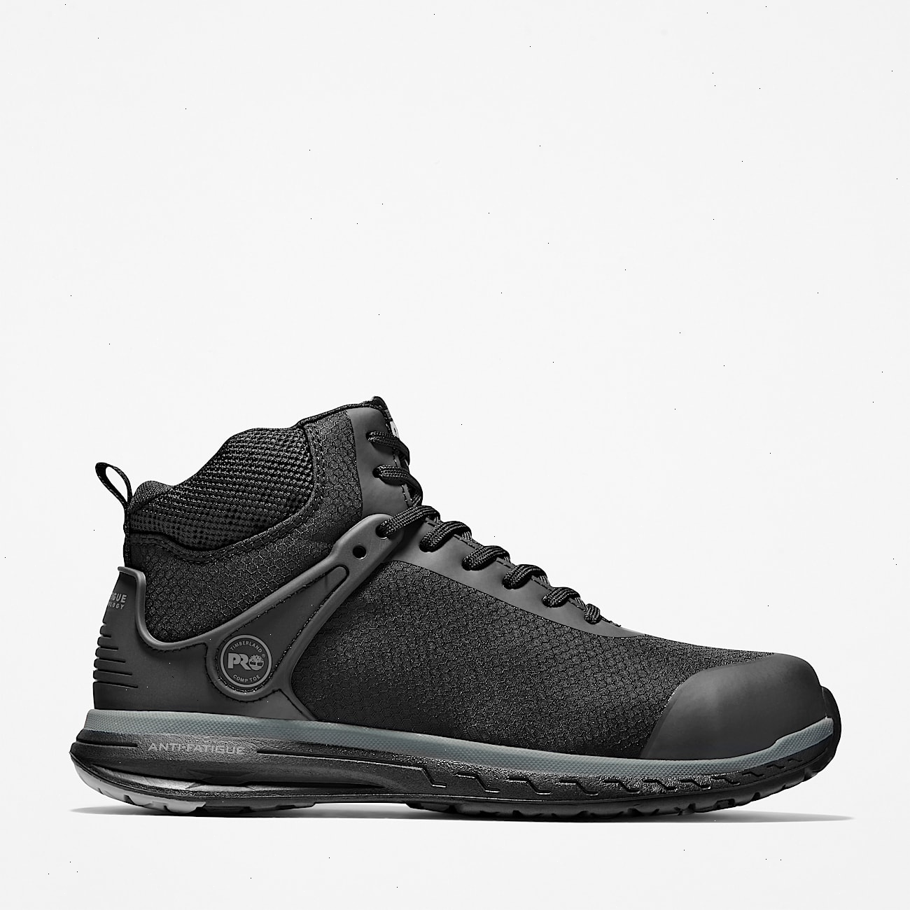 Our men's metal- and mutilation-free Timberland PRO® Drivetrain athletic work boots offer lightweight comfort, but they're all business when it comes to protection. Not only are their abrasion-resistant ripstop nylon uppers tough enough to handle working on your feet all day, they feature composite safety toes powered by Carbon Shield™ technology for extra strength, TPU toe overlays for extra durability in this high abrasion area, and they are designed for Electro Static Dissipating (ESD) compliance to minimize hazards from static electricity buildup. For comfort, we added our Anti-Fatigue Technology polyurethane footbeds for all-day shock absorption and energy return and a breathable, moisture-wicking lining made of ReBOTL™ fabric containing at least 50% recycled plastic with an antimicrobial treatment for odor control. Plus, their lightweight outsoles are made of heat-, oil-, slip-, and abrasion-resistant, non-marking, All-Weather TPU for enhanced traction.