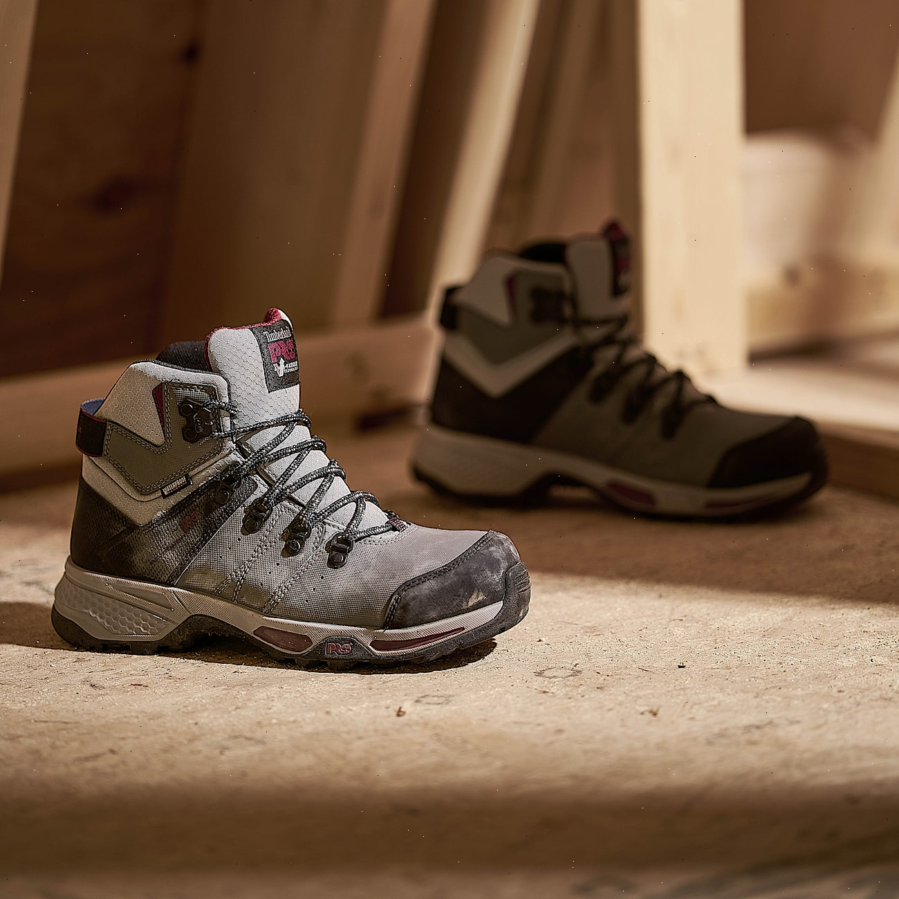 Not just down-sized men's boots, our all-purpose, waterproof Switchback women's hikers are built to the unique contours of a woman's foot to offer the optimal fit and comfort you need for demanding work that transcends gender. We combined composite safety toes with electrical hazard protection and our Anti-Fatigue Technology footbed that absorbs shock and returns energy back to your feet so you can tackle the toughest days on the job. Their coated waterproof leather uppers offer abrasion-resistance from above, while an internal waterproof membrane provides maximum waterproof protection and blood-borne pathogen resistance. There's also a breathable, moisture-wicking lining made of ReBOTL™ material containing at least 50% recycled plastic, flexible cement construction, a fiberglass shank for structural support, and a lightweight, cushioning EVA midsole for all-day comfort. Traction and durability are enhanced with their heat-, oil-, slip-, and abrasion-resistant, non-marking rubber outsoles.